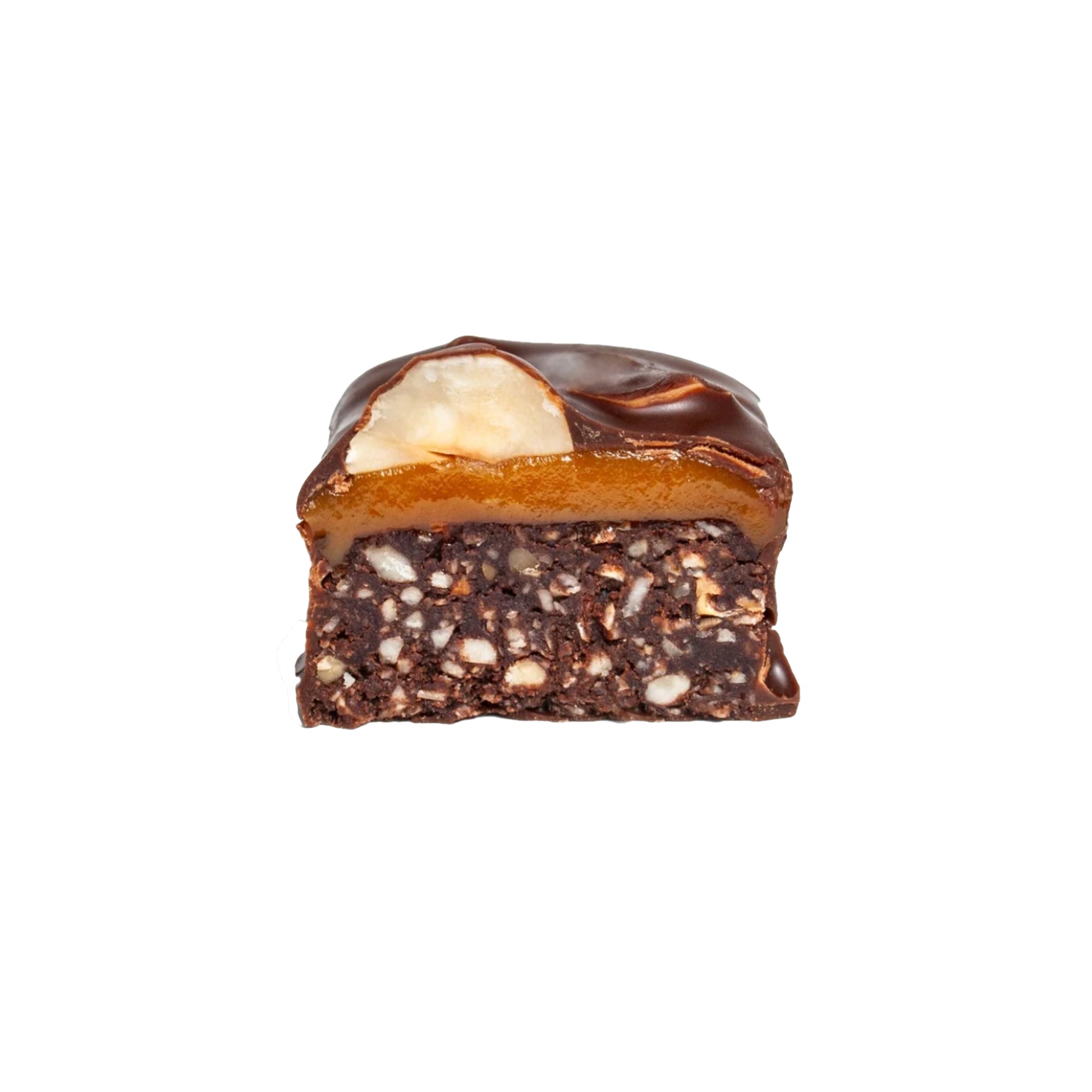 A brownie bar, rich in chocolate flavor combined with caramel, it's a pure pleasure to take everywhere.